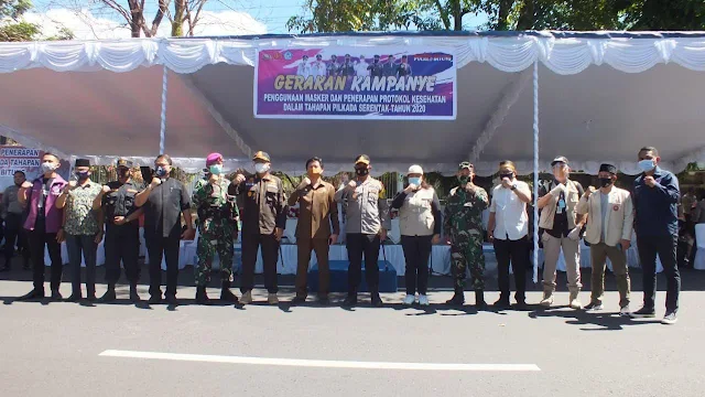 LUGAS | Bitung - Kapolres Bitung AKBP FX. Winardi Prabowo, S.I.K., memimpin Kegiatan Pelaksanan Operasi Yustisi penggunaan masker dalam penegakan Inpres No. 6 Tahun 2020 tentang Peningkatan Disiplin dan Penegakan Hukum Protokol Kesehatan dalam Pencegahan dan Pengendalian Covid-19 Polres Bitung di depan kantor Walikota Jl. Sam Ratulangi No. 45 Bitung Tengah kecamatan Maesa, Kamis (10/09/2020).
