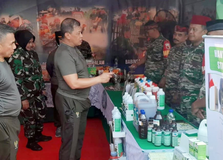 LUGAS | Kodam Jaya, Kota Bekasi - Sertu Ujang Parman Anggota Koramil 01/Kranji Kodim 0507/Bekasi mengikuti pameran Inovasi dan kreatif di Stand TNI Fair Tahun 2023 dengan memamerkan Pupuk Cair Cendana.