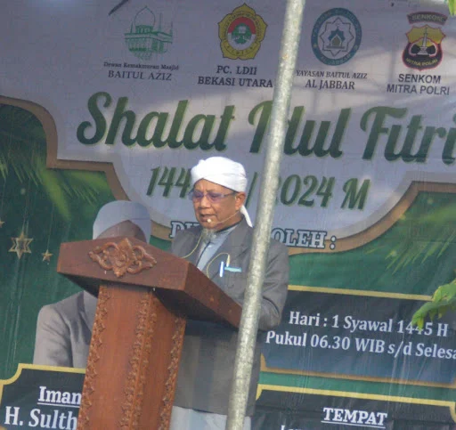 Shalat Idul Fitri 1445 Hijriah terlaksana berkat kerjasama PC LDII Bekasi Utara, DKM Baitul Aziz, Yayasan Baitul Aziz Al Jabbar dan Senkom Mitra Polri.