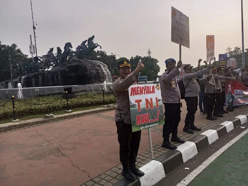 "Salam Presisi... Dari Kawasan Patung Kuda Monas, Polres Metro Jakarta Pusat mengucap Dirgahayu TNI Ke-79. TNI Prima... Jaya... Jaya... Jaya," Ucap Susatyo bersama anggota lainnya.