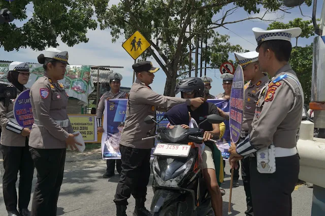 Selama operasi, Kapolres Siak AKBP Asep Sujarwadi langsung turun ke lapangan untuk memberikan helm kepada pengguna jalan yang melintas tanpa pelindung kepala. Tak hanya itu, beberapa pengguna jalan juga menerima leaflet berisi pesan-pesan keselamatan berkendara sebagai bagian dari edukasi dan sosialisasi tertib lalu lintas.